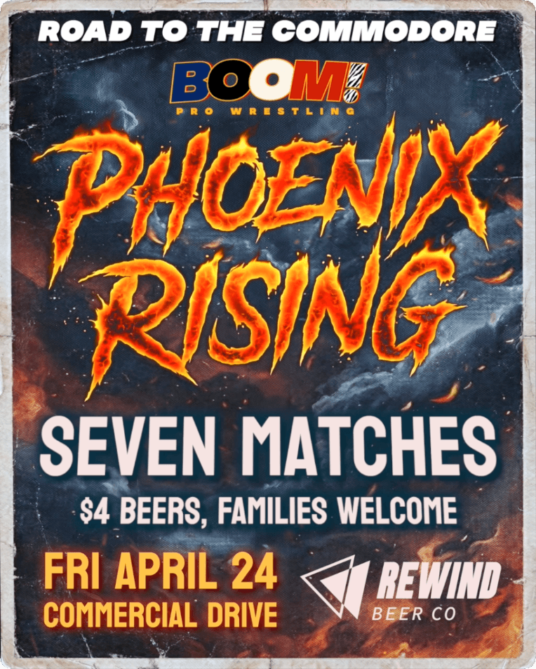 Tickets often sell out, so grab yours early and come see why BOOM! Pro Wrestling has become a go-to night out for Vancouver wrestling fans and newcomers alike.